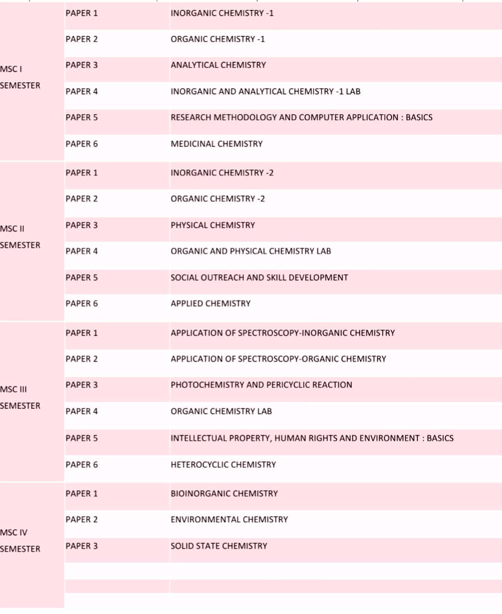 MSC 1 TO 4TH SEMESTER PAPER/COURSE/SUBJECT